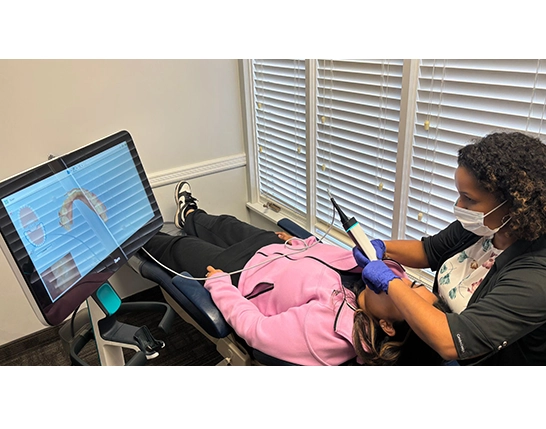 Figure 8: Ms. Khedoo scanning a practice employee so they can experience intraoral scanning first-hand.