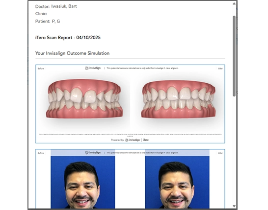 Throughout patient consultations, we actively record notes and screenshots, incorporating them into a personalized iTero™ scan report. This report plays a key role in supporting patient engagement after they leave our office to consider their treatment options. It enables patients to communicate their oral health and treatment needs with spouses and family members, reinforcing their treatment decisions. From our perspective, these reports enhance follow-up communication, transitioning interactions from impersonal “cold calls” to personalized, meaningful connections. By referencing specific details from their consultation, we create stronger patient relationships and encourage continued engagement throughout their treatment journey.