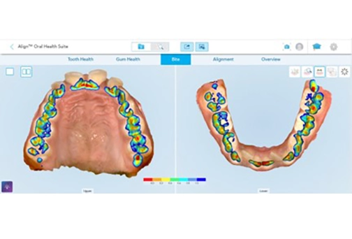 The patient cooperated very well and was comfortable throughout the scan. Additionally, our technician was able to scan her in about half the time it usually takes to scan other patients using the iTero™ Element Plus series scanners. The patient’s mother was impressed with her daughter’s cooperation and how quickly and efficiently the scan was completed. She was also grateful for how comfortable her daughter felt throughout the process. Furthermore, once we displayed the scans on our screen, she was amazed at the quality of the photos. She had never seen her daughter’s mouth that close and in detail (Figure 5). I used the scan to discuss some of the findings with the patient and her mother. While most people may understand the concept of crowding, many people will not understand the concept of a palatally-impinging deep bite. The scan photos and the iTero™ Occlusogram helped me not just explain but actually show why the patient needed treatment.