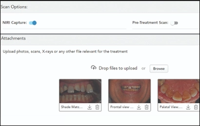 Share automatically-integrated iTero™ intraoral camera and iTero™ NIRI (Near Infra-Red Imaging) images.